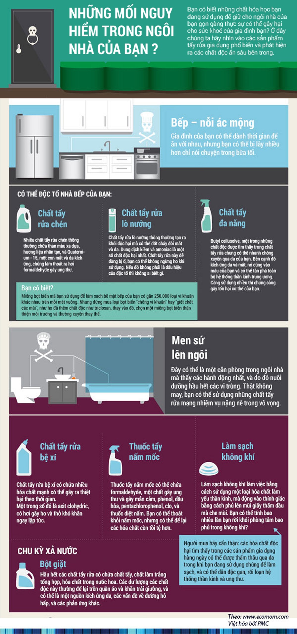Butyl cellusolve, một trong những chất độc được tìm thấy trong chất tẩy rửa chung có thể nhanh chóng xuyên qua da của bạn. Bên cạnh đó kích ứng da và mắt, nó cũng vào máu của bạn và có thể tàn phá toàn bộ hệ thống thần kinh trung ương. Càng sử dụng nhiều thì chúng càng gây tổn hại cơ thể của bạn.